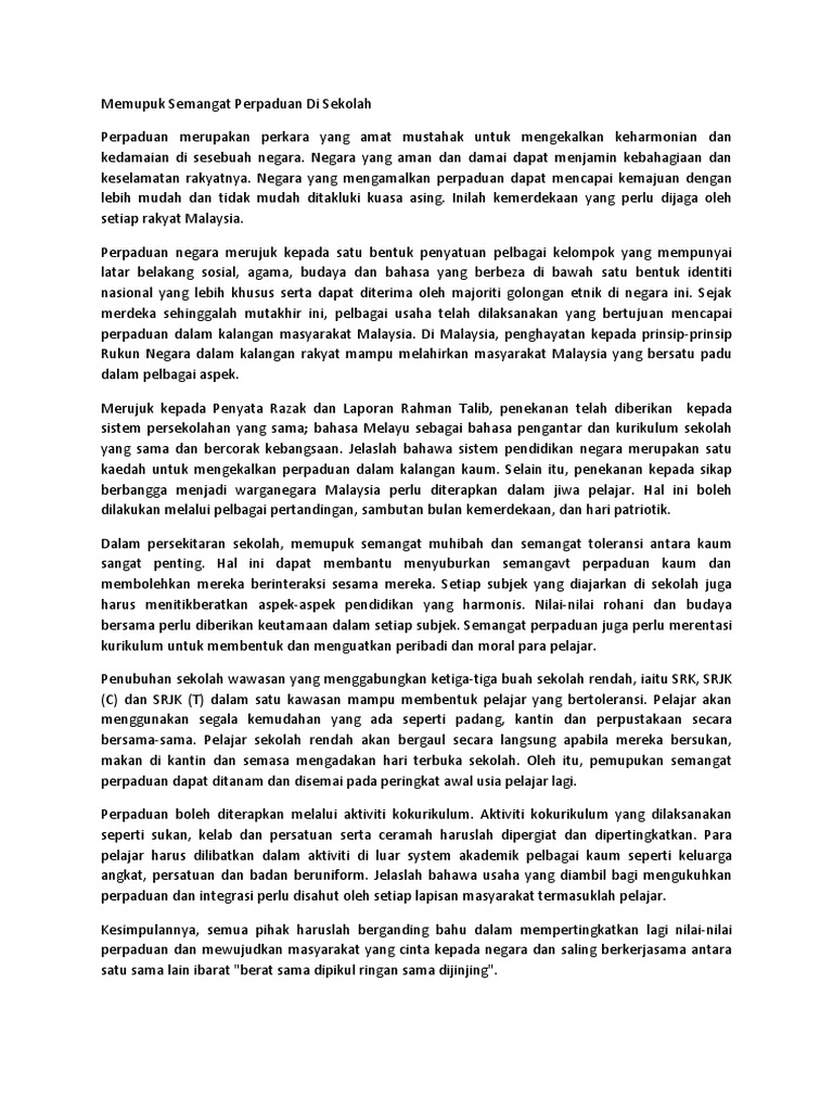 Rumusan Usaha Untuk Memupuk Perpaduan Dalam Kalangan Pelajar Dan Cabaran Yang Dihadapi Bahasa Melayu Spm Kertas 2