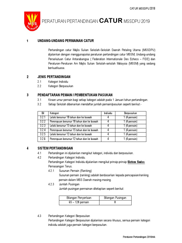 Peraturan Pertandingan Catur Msss 2019 Pdf