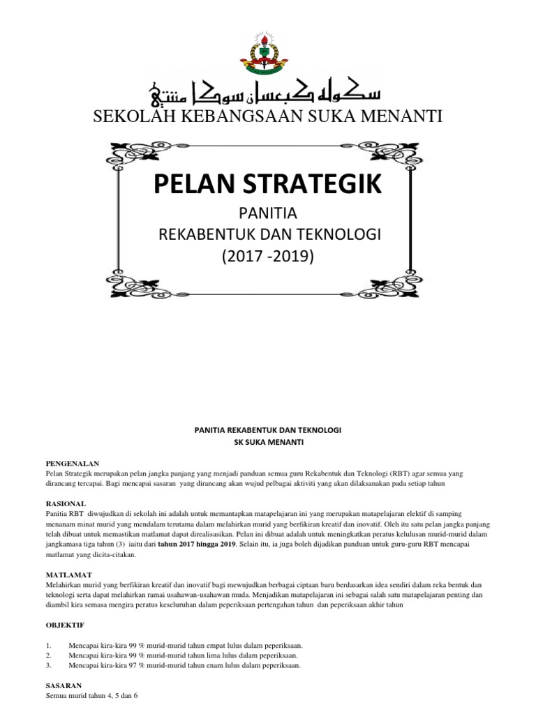 Plan Strategik Rekabentuk Dan Teknologi 2017 2019 Pdf